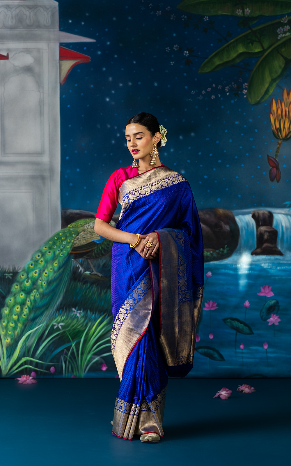 Available exclusively at Roop Saree Kendra, Chandni Chowk, this saree is a harmonious blend of heritage and contemporary allure.