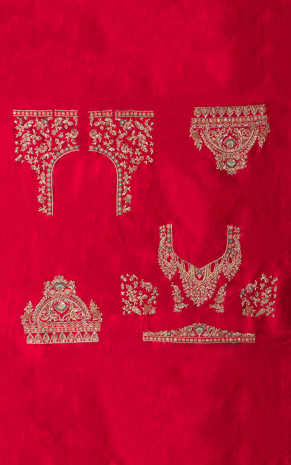 Adorned with breathtaking details, this lehenga features intricate gold dabka work, resham embroidery, and sequins. The meticulously embroidered motifs mirror the geometric design of Indian traditional style, drawing inspiration from its rich historical heritage.